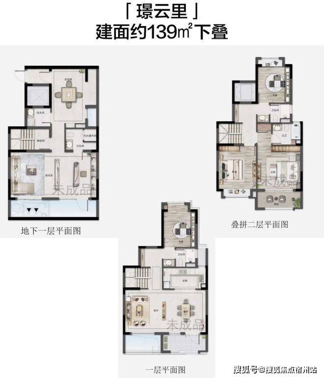 总层高:别墅地下1层,地上2层;大平层6层;叠加4层