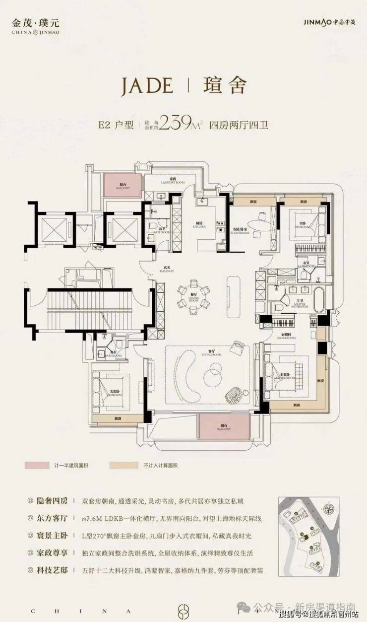 在建面约172㎡户型中,我们可以看到金茂对 “三代同堂” 生活方式的深刻理解!