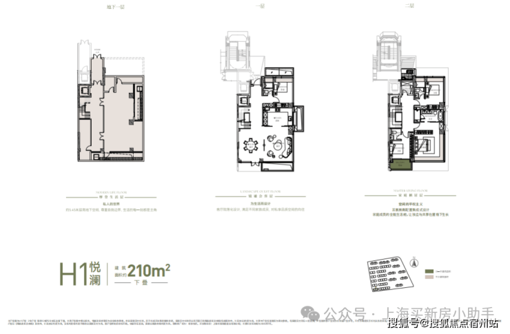 建面约182㎡ 下 叠 :庭 院+地下室(含夹层)+阳台的整体 附赠空间约210㎡ ;