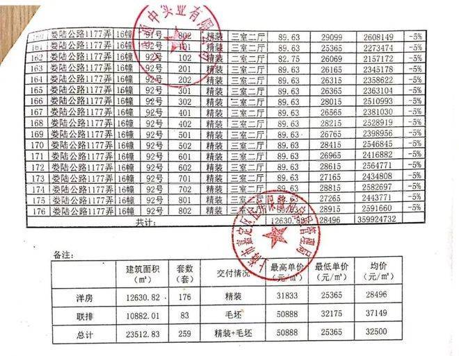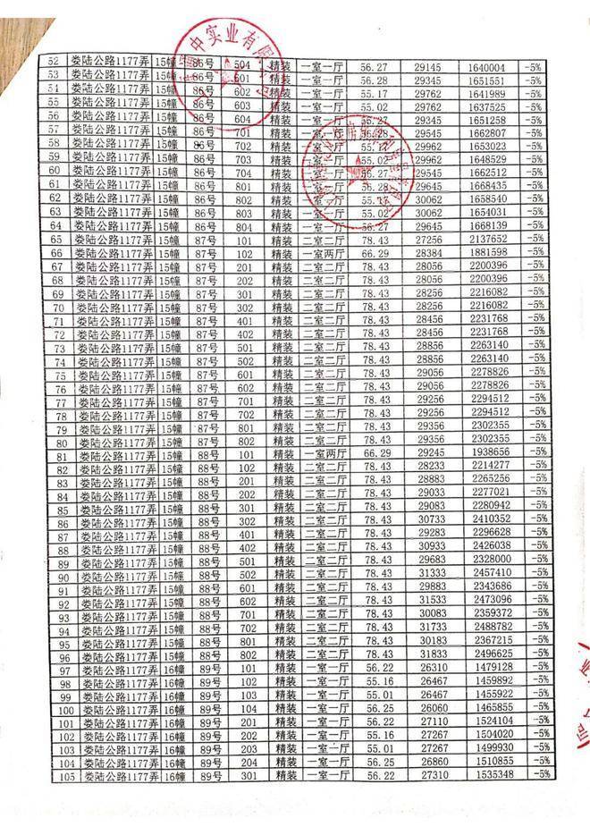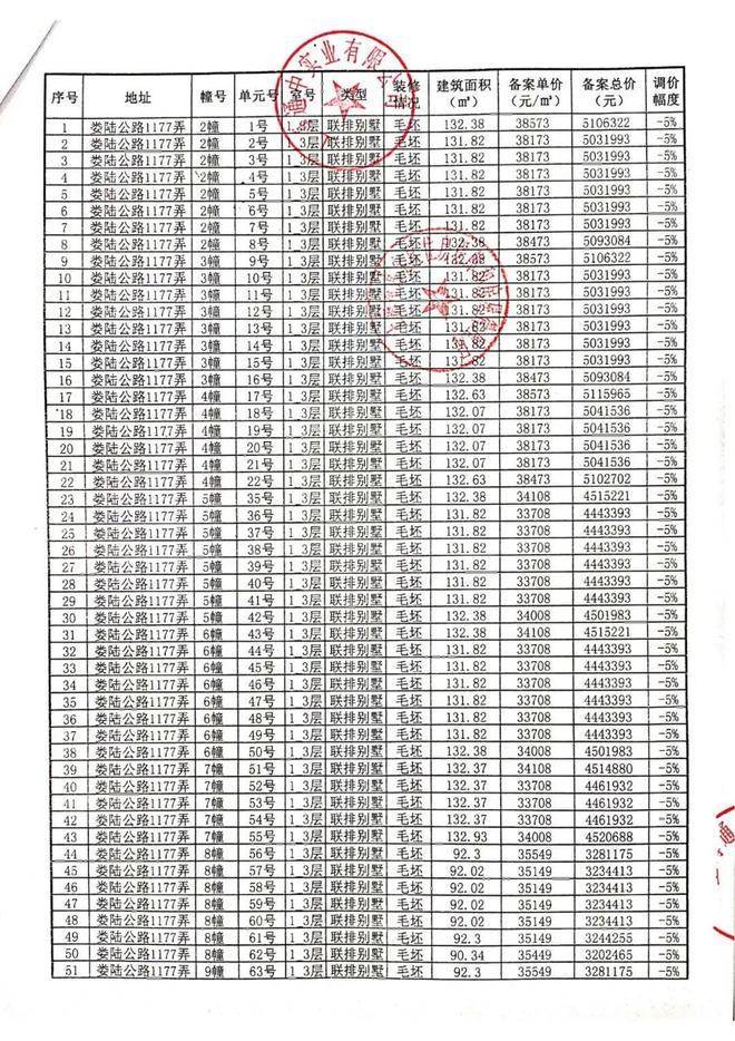 一房一价表: