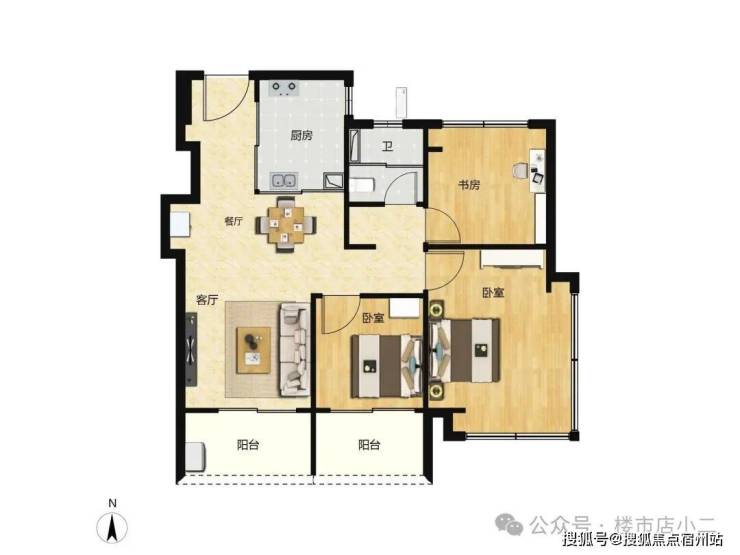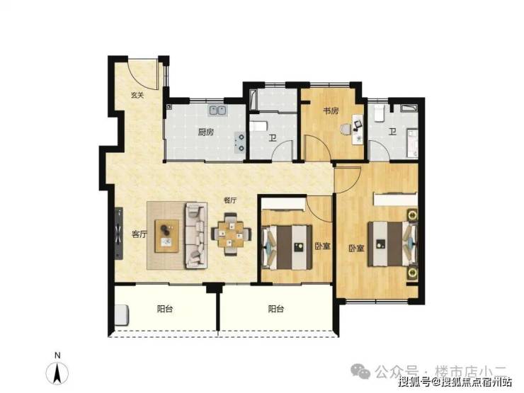 创新的南向双阳台设计,实现了“会客+晾晒”的自由分区。