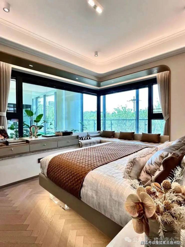 270°环景飘窗是一大亮点,大幅增加了采光面,将社区花园景致引入室内,主卧秒变“星空房”。