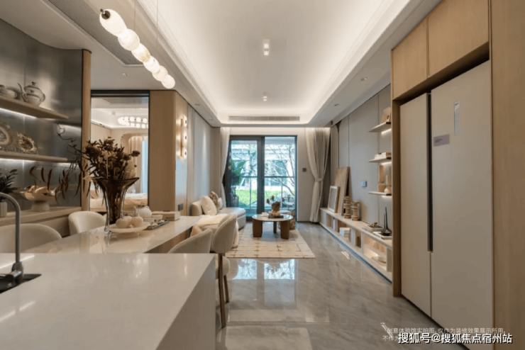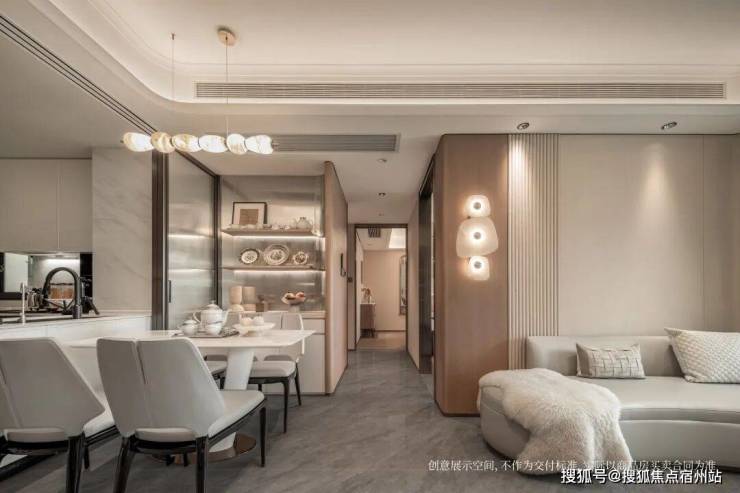 更巧妙的是S型分户墙设计,通过隐藏式收纳系统,将玄关柜、冰箱、餐边柜等功能巧妙整合,在不影响布局结构的前提下提高了空间利用率。