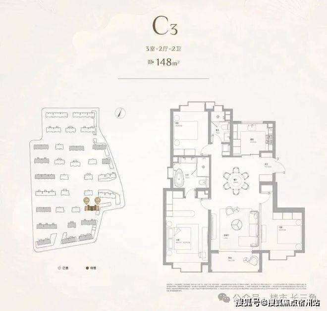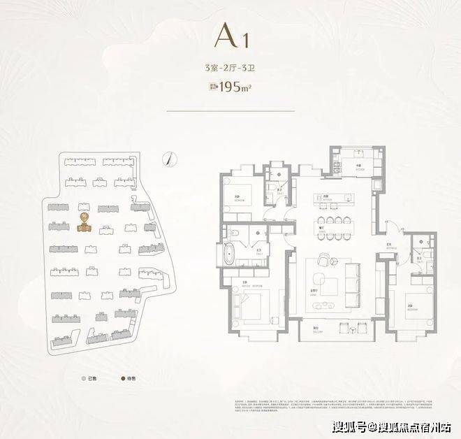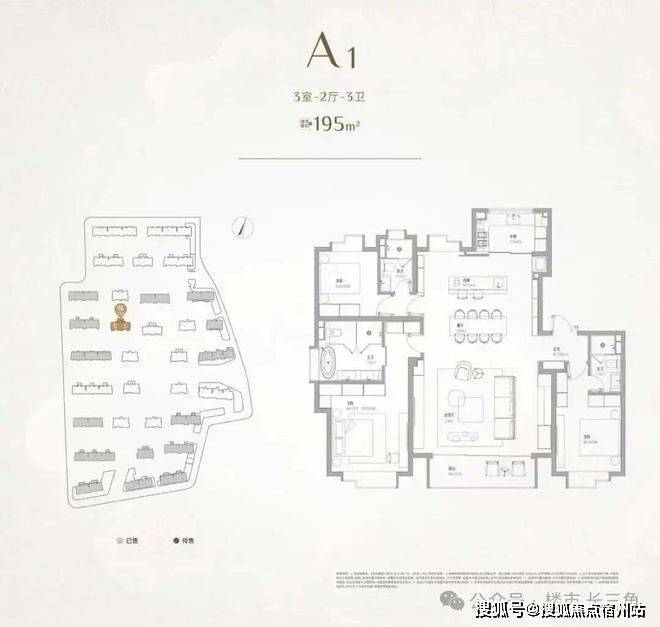 建面约195㎡户型:稀缺大平层返场,约7米宽厅+3套房设计+中西双厨,3年等1席!
