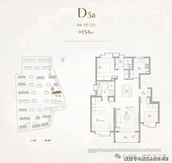其中建面约101㎡2房2卫,总价预计千万以内,主卧套房不仅拥有独卫,还有步入式的衣帽柜,也可以设计一个梳妆台,尺度感不输市面上120㎡户型的主卧;南北双阳台,彻底告别了传统单阳台在功能上的纠结与妥协,从客厅望出去不再有衣物遮挡光线和视野。