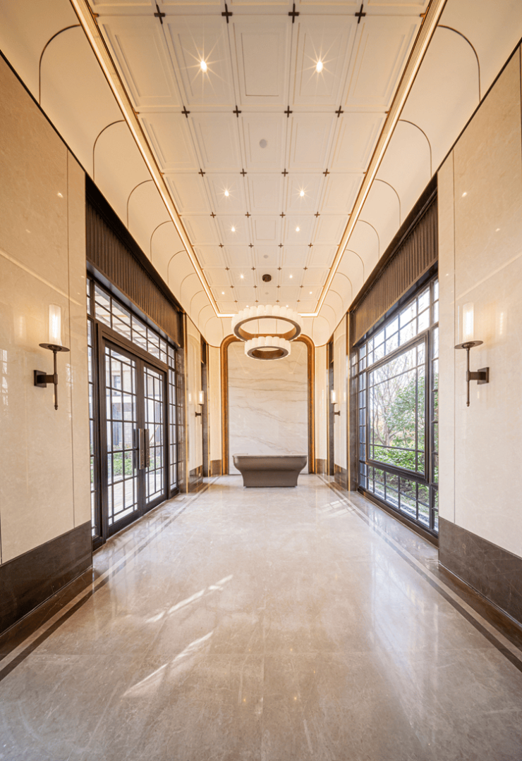 电梯厅私域化:8.5 - 10㎡独立电梯厅,类一梯一户设计,以精巧的空间叙事,重新定义现代居所的尊贵内核。