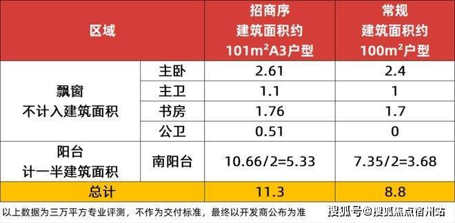通过专业测评还可以看出招商序的不计入建筑面积的部分有整整11.3㎡,相当于多出一个房间,针对百平三房这样的紧凑型户型来说,性价比真的很高,实际居住体验也会更舒适!