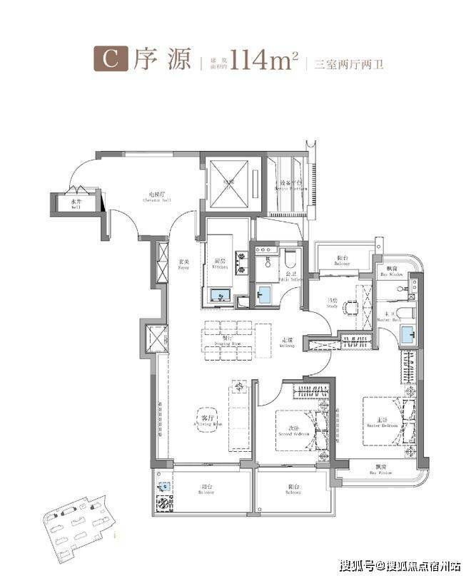 招商序114㎡户型,不计入建面部分约11.7㎡,同类产品仅8.2㎡,对标市面上建面约125㎡产品;