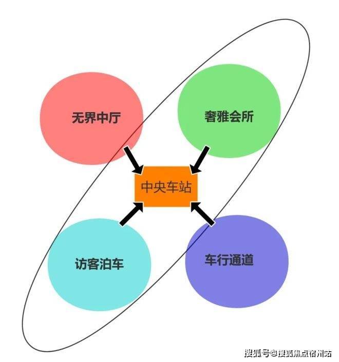 在招商序,车库不仅精装交付,还提出了“中央车站”的概念,通过动线的巧妙设置,让车库连通了访客泊车、会所、中厅、车行通道等各个空间。