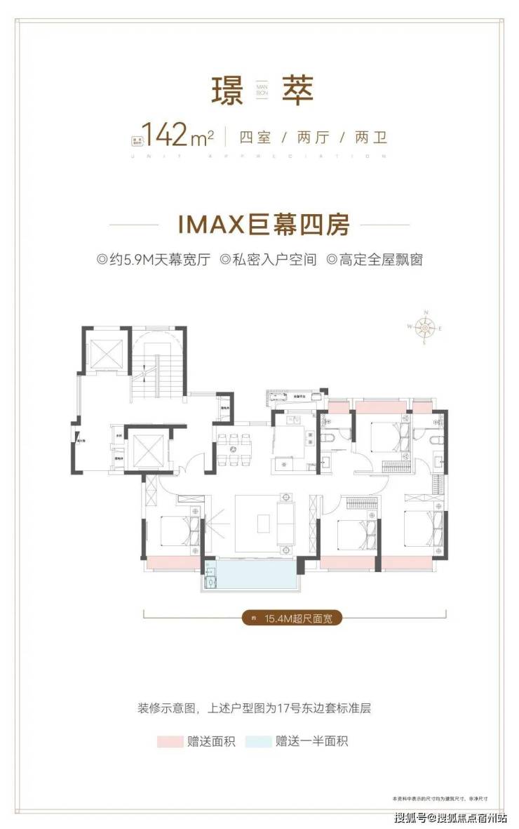 四开间朝南,约3.6m阔尺宽厅+约12.8m南向面宽,带来超一流的采光和宽景视野。