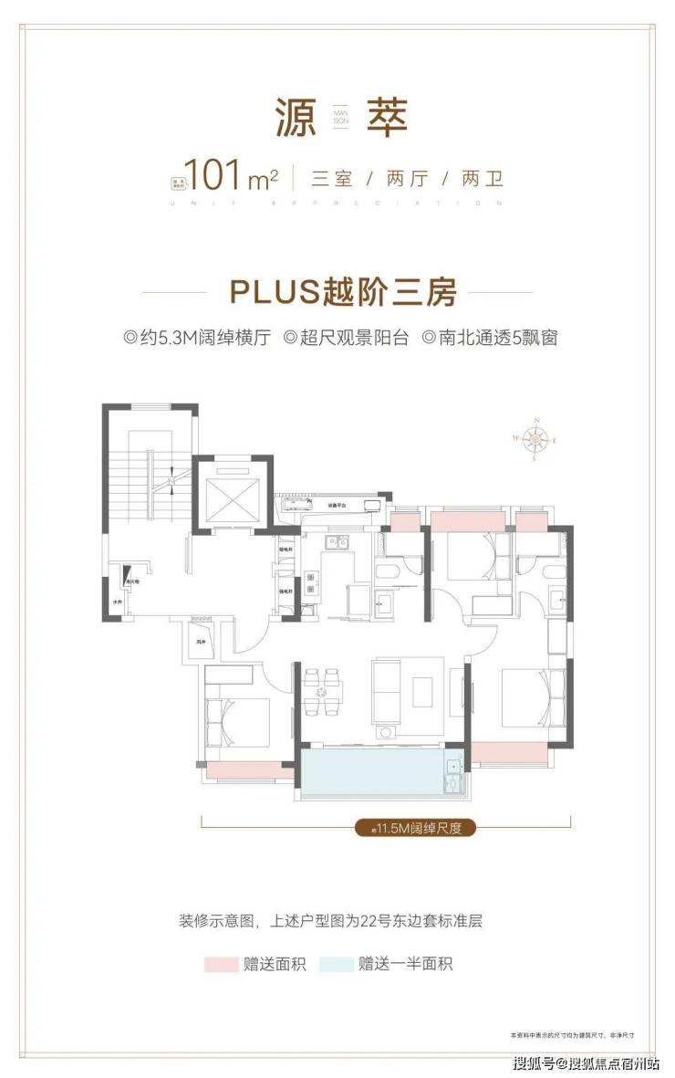 建面约101㎡3房,约5.3m阔尺横厅+大尺度南向阳台,实在是非常的赞!