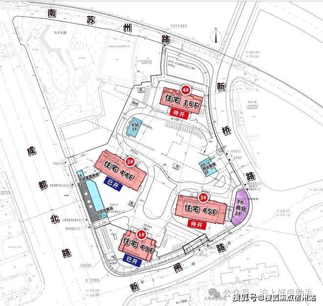 1号地块规划3栋超高层和1栋高层,最高达约165米。具体位置是西至成都北路、东至新昌路、南至新闸路、北至南苏州河路;7号地块规划为风貌别墅。