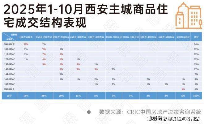 在成交结构上,总价200万以内的刚需刚改产品为西安市场成交主力,刚需刚改类四代宅在有效价差面前,产品优势被价格优势替代。同时,总价500万以上高改产品出现头部聚焦效应。