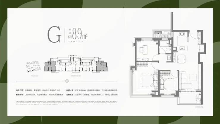 全系户型以阳光户型为基本要求,通过开间尺度的独特创造,全系营造宽厅阔朗的居住体验,由此实现在舒适性和空间感上的完美平衡。