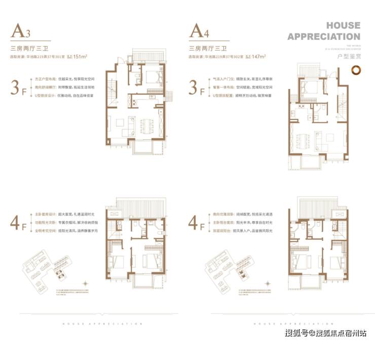 下叠户型,共有三个主力户型,建面约155、163、176㎡下叠。