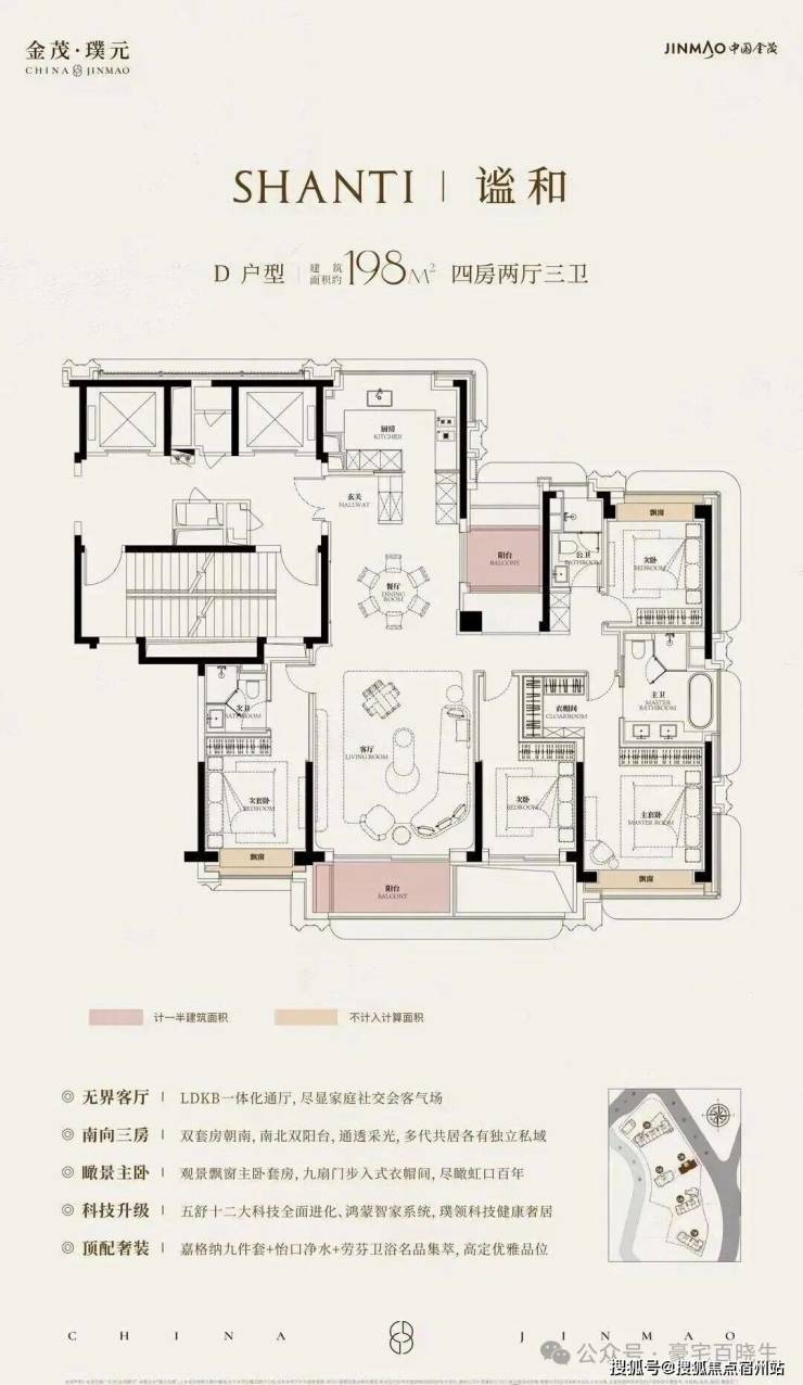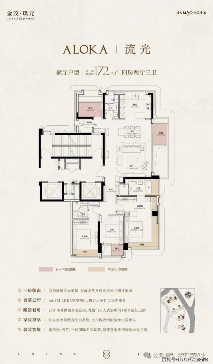 在建面约172㎡户型中,我们可以看到金茂对 “三代同堂”生活方式的深刻理解!