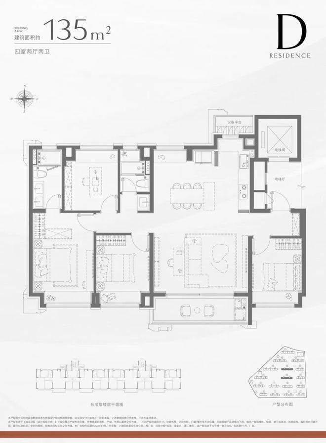 建面约135㎡4房2卫:
