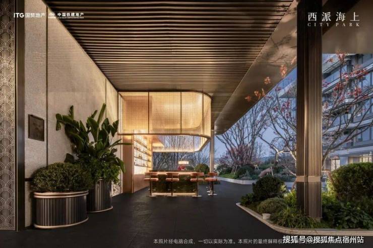 约590㎡环岛式酒店落客区+约88m气派门头+鎏金吊顶,就像打开了一幅巨幅画卷般,让人充满了对于归家的向往。