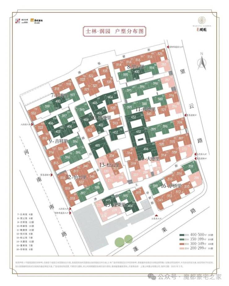 士林润园社区规划可分为蓬莱路城市公共景观以及社区内部景观两个部分,其中市政绿地衔接于上海2035城市总体规划中“蓝绿丝带”的上位条件要求,社区内部街巷空间形成空间序列形成递进的层次,将归家体验的序列依次展开,形成城市街道→入口(一级门户)→街巷→节点空间→里弄门(二级门户)→合院入户(三级门户)的方式,基本可保证大多数住户可体验到两重以上的空间递进。☑️☑️华润士林润园售楼处电话:400-1183-605☑️☑️