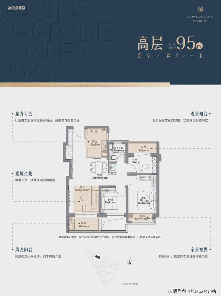 建面约95㎡高层,全系方正户型,双阳台设计,LDKB一体化设计,贯通动区轴线,打造温馨的家庭生活聚餐;☑️☑️招商臻境售楼处电话:400-1183-605☑️☑️