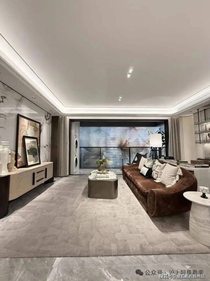 进到实地约99平样板房,整个玄关柜几乎全部都是皮质缝线包裹,细节拉满;