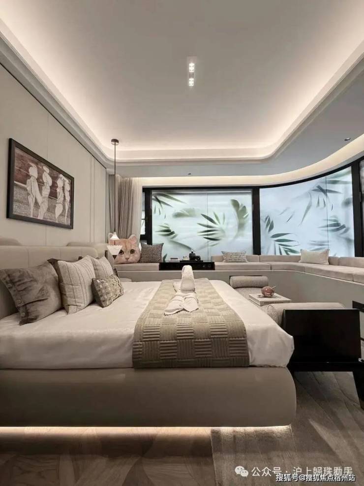 在今年上半年大家都在卷人字拼地板的基础上,外滩源著主卧地板升级为柳叶拼接,进一步做了升级: