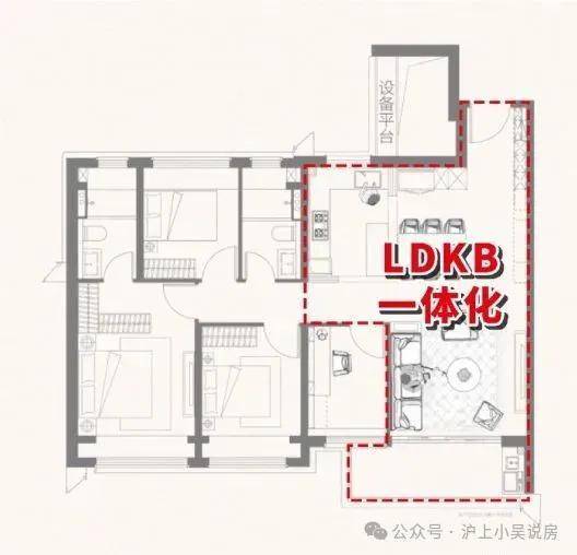 问题。厨房、餐厅、客厅三大空间联通,不仅通透感十足,还构建了一个利用率超高的家庭核心区,在这样高度开放的空间里,即使互不交流,也能保持交流和关注!