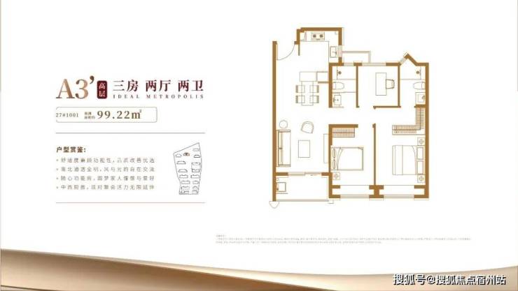 具体细节方面,项目目前只有一个建面约100㎡三房的样板间,带软装后面宽约3.3米,吊顶后层高约2.73米。