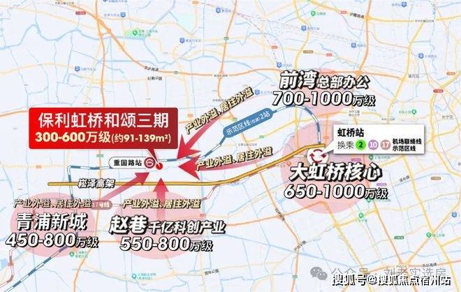 由此可见,示范区线沿线连接着华为、前湾、大虹桥、临空、中山公园、市中心、张江、华泾等一众超强产业区。保利虹桥和颂三期凭借地铁房的优势及价格红利,必将成为这些产业区人才置业的热门之选。