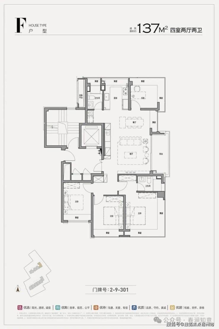 户型设计:得房率高达 91%-94%,空间利用率高。99㎡三房户型为内环罕见的百平米小户型;137㎡四房户型采用西南向无遮挡全景窗设计,可将城市天际线与公园景观尽收眼底。