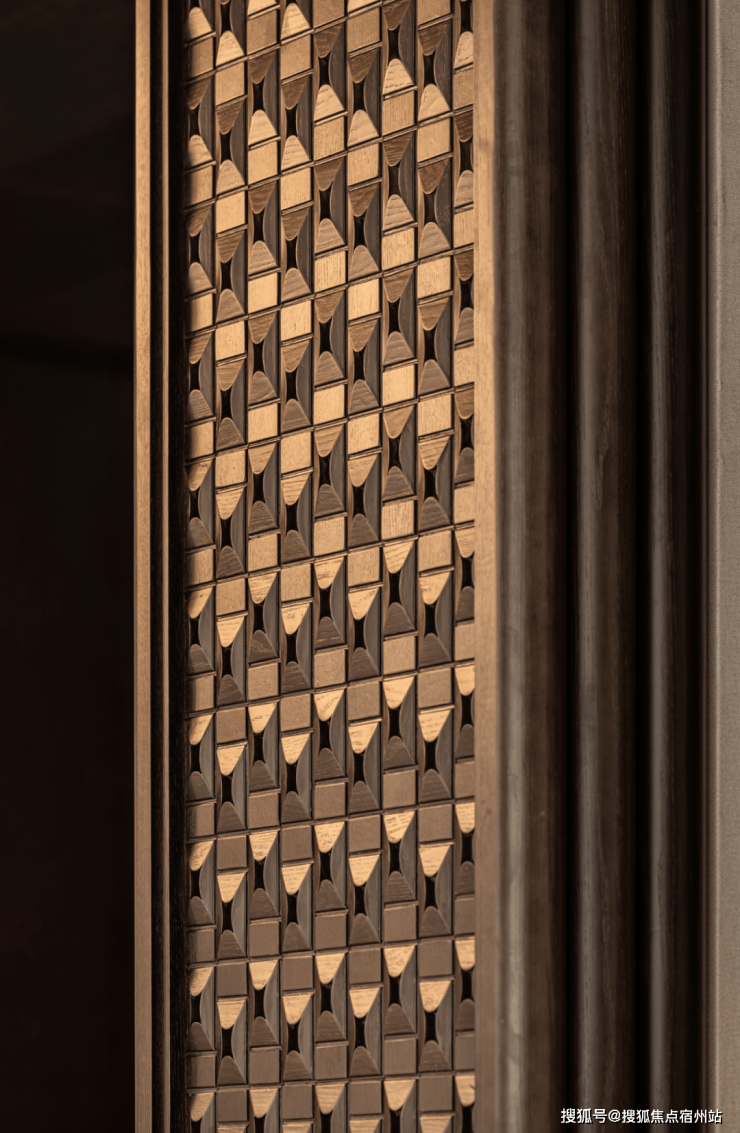 墙面灵感来源于老上海建筑中门饰纹样,以现代设计语言重新解构传统雕花的精致与典雅。在光影交织间,既保留了时代印记,又赋予空间轻盈之感。