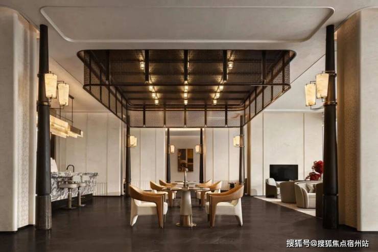 开阔的布局中形成恰到好处的亲和感,自然材质的温润触感与低饱和的色彩搭配,令人安心的聚谈随光前行。