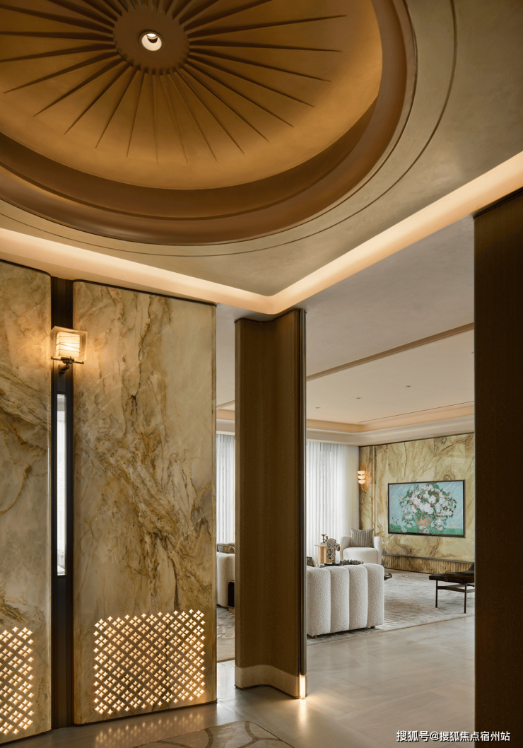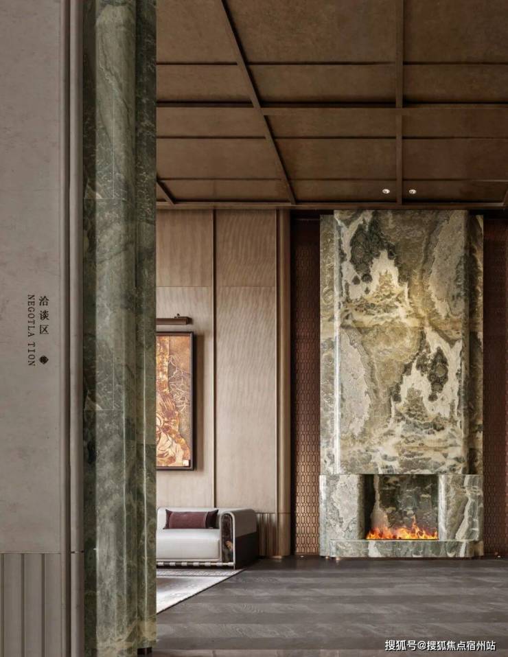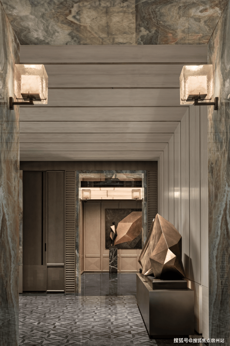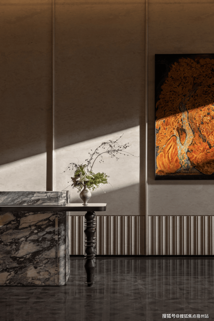 进口水墨玉石与沉香米黄石构筑的接待台区域,将 “等待” 与 “安心” 融入归家的第二重礼遇,让每一次抵达,都成为被岁月温柔守护的归心之旅。