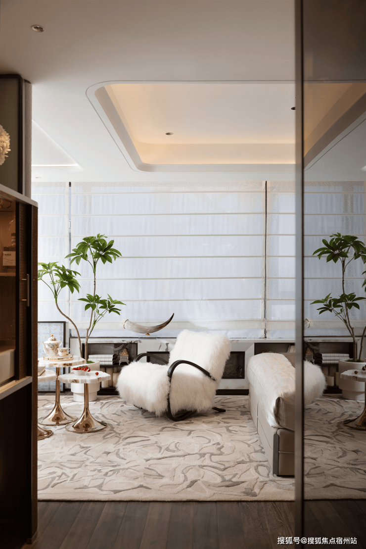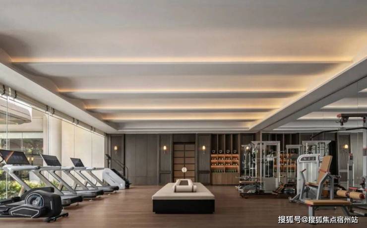 会所内设泳池在内的系列健身中心,墙面与天花的柔和石材与浅木色调,以及白色帷幔,共同弱化了时间的急促感。极简的泳池位与柔光给予最私密而惬意的“奢华酒店度假感”,畅游间可饱览庭园意趣。