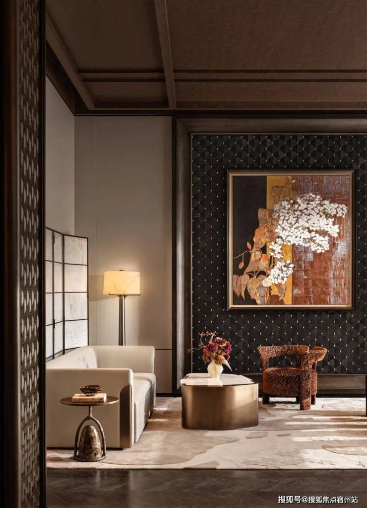 以沉稳奢华为底,既承载大时代的风云变化,亦包容家庭的脉脉温情。仪式感的酒架与屏风的植入,将东西方“藏与秀”的文化物化,灵活且考究。谈笑间显风雅,觥筹间映繁华。