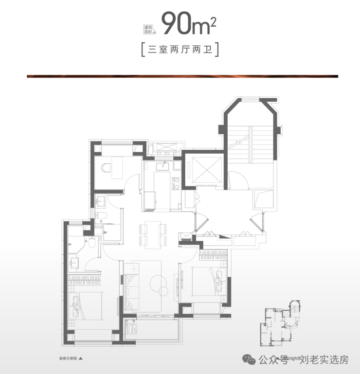 建面约90㎡的三房两厅两卫
