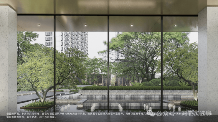 十字主轴的归家仪仗。通过门头、水岸、花园等的组合,打造十字主轴的归家仪仗,形成极具品味的入户体验;并融入至臻工艺,从主入口、地库、公区、架空层打造专属的仪式感。