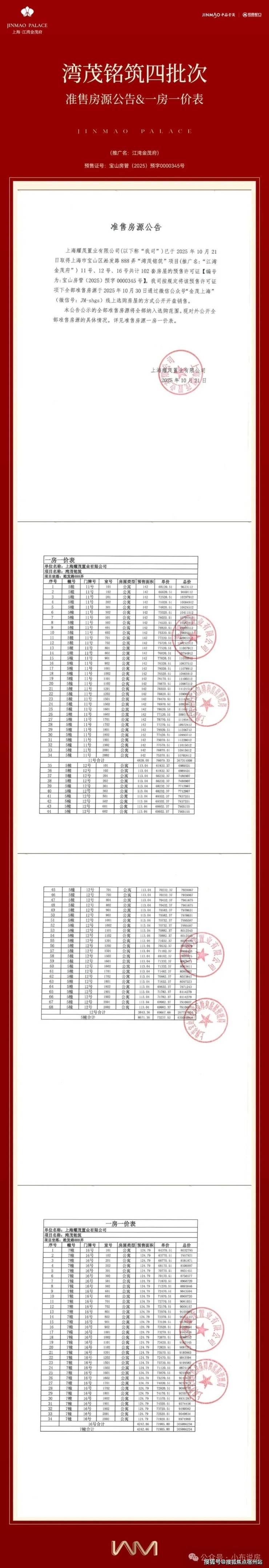 江湾金茂府|四批次准售房源公告&一房一价表