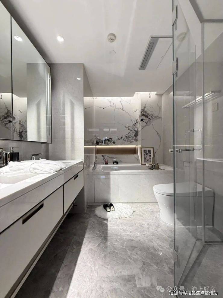 尤其主卧星级套房,配置独立衣帽间、书房,奢华主卫四分离,双台盆+淋浴区+大浴缸+智能马桶,私密性&奢适度无敌;