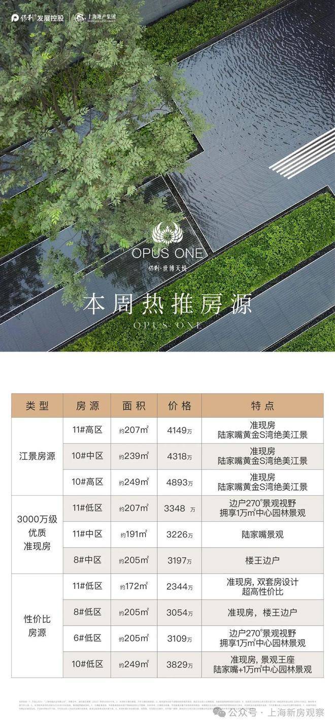 上海保利世博天悦24小时vip热线☎:400-882-4258(预约快线)保利世博天悦将往期1#6#8#10#14#楼两幢景观洋房楼王!上海CAZ内,唯一真正贴江(约80米)8层洋房,建面约176-195㎡3-4房准现房,高区可看江、中区看陆家嘴三件套、低区赏园。得房率高达约82-83%;自然也是上海2500万到3900万级高端改善首选。目前还有少量房源直接认购!