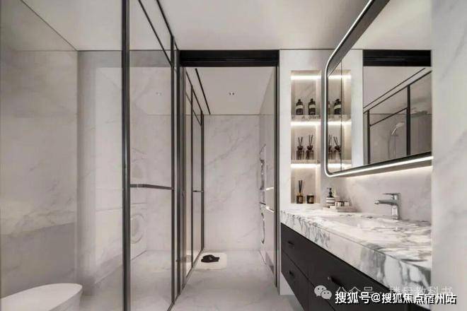 公卫打造独特的四分离系统,实现独立洗漱台、卫生间、淋浴间、洗衣区互不打扰,将酒店化体验引入住宅。