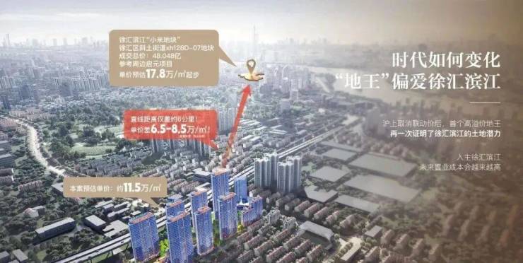 去年8月份,徐汇滨江原小米地块以30%溢价率触顶成交, 折合楼板价约13.1万,轰破时隔八年的全国地王记录!业内预测最终售价可能会超过18万+!