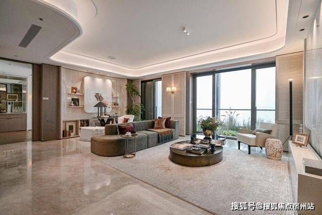 1、【巨幕景观客厅】最宽的客厅面宽约5.65m,和市面上180平左右的客厅面宽差不多。客厅大面宽带来阳光全天候洒满客厅,每一天都沐浴在温暖的阳光中。