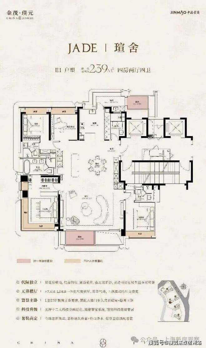 据悉,产品体系,金茂上海第一个TOP级「璞系」+「科技住宅」作品,最快4月底展厅,6月份样板间,7月底首开,9月份实景示范区(会所等)开放。