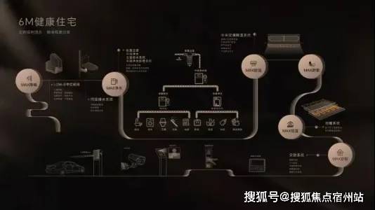 全屋配置6M健康智能住宅系统。这个智能系统系统涵盖降噪、净水、除湿、恒温、安智等多方面: