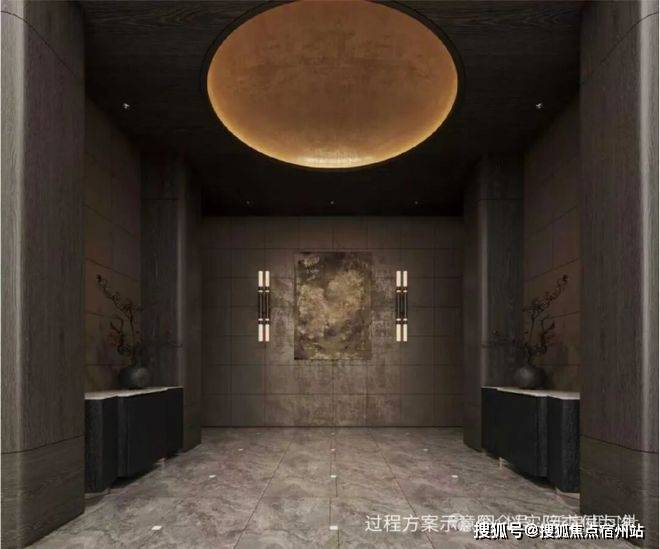 约50m面宽的气派门头+酒店式入户大堂,打造艺术格调归家。入户大堂由吴滨设计,呈现“天圆地方”的效果,方正的线条勾勒出空间的规整与大气,与顶部的圆形形成刚柔并济的视觉平衡,让每一次归家都成为一场尊贵的礼遇。