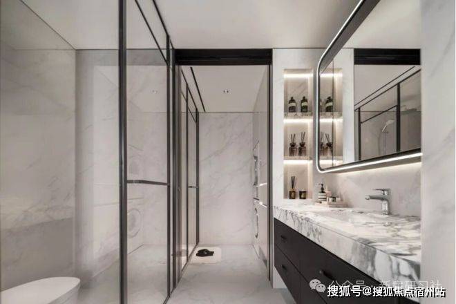 酒店式四分离公卫:实现独立洗漱台、卫生间、淋浴间、洗衣区互不打扰,将酒店化体验引入住宅,早高峰时期也能做到出入有序。