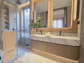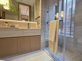 卫浴系统:高仪龙头、唯宝洁具、智能马桶、定制浴室柜,主卧套房独立卫浴,干湿分离,私密舒适。