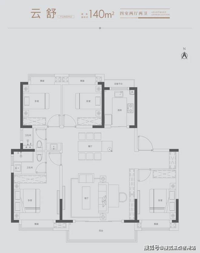 方正格局:全明阔绰四室、约13.4M南向四开间,打造尊荣生活格局