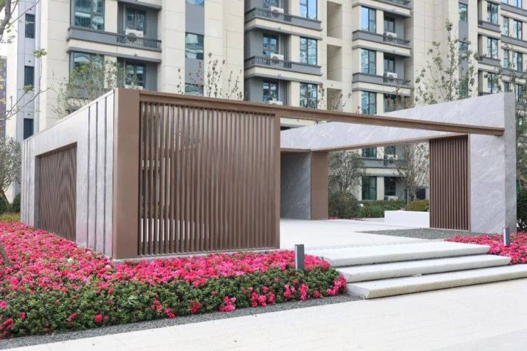 “七分门楼三分厅堂”,约6.6m高的社区大门,巍峨壮观,庄严尊贵,归家第一步已见大家底蕴。